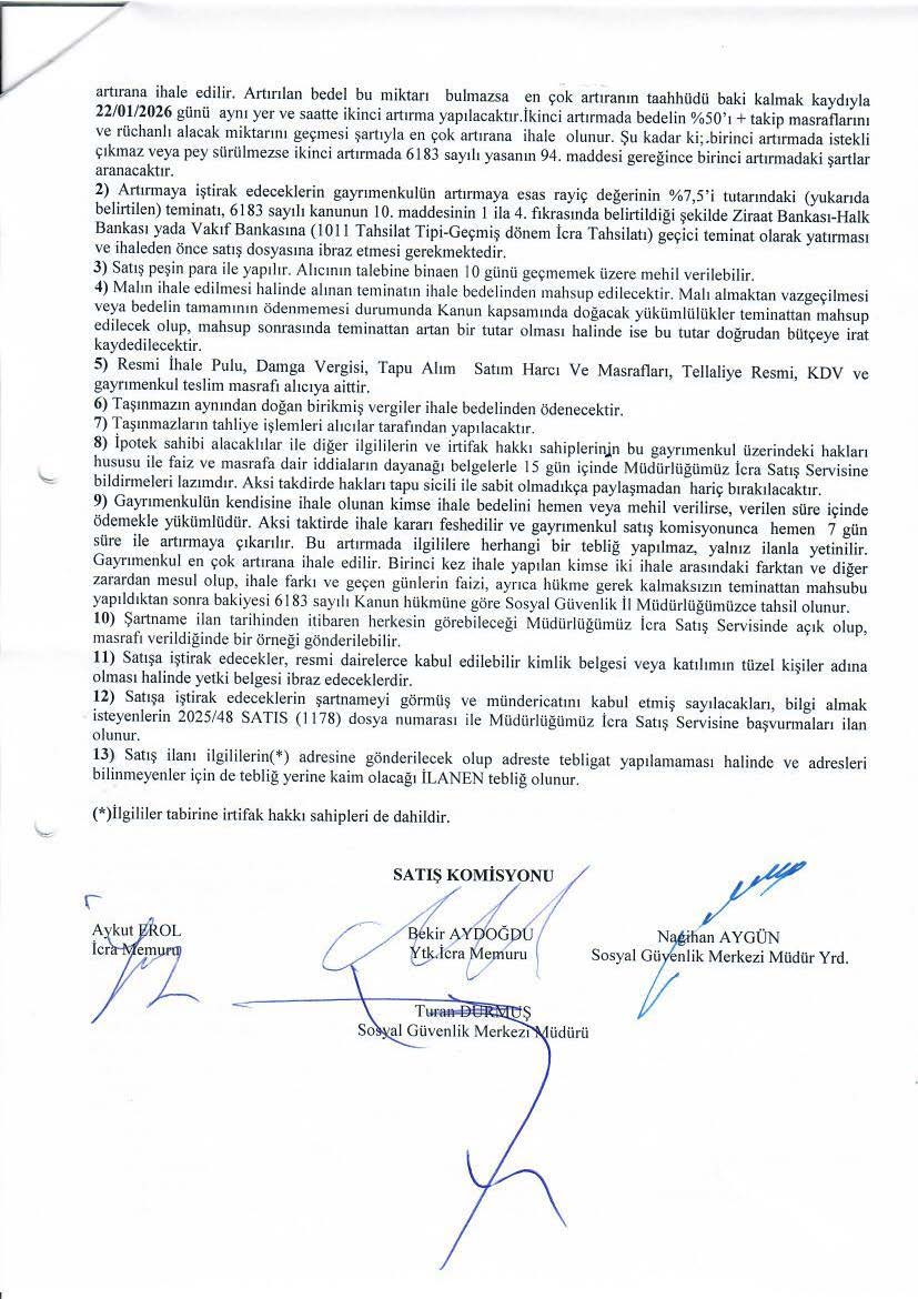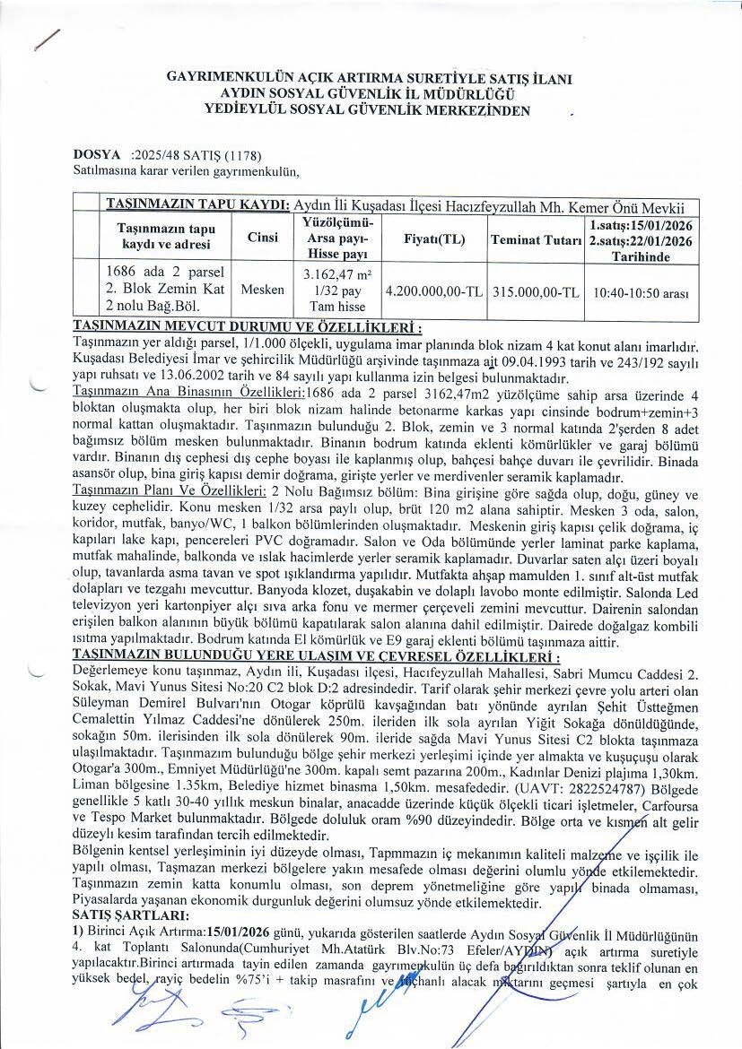 Aydın Yedieylül Sosyal Güvenlik Merkezi'nden Gayrimenkul Satış İlanı