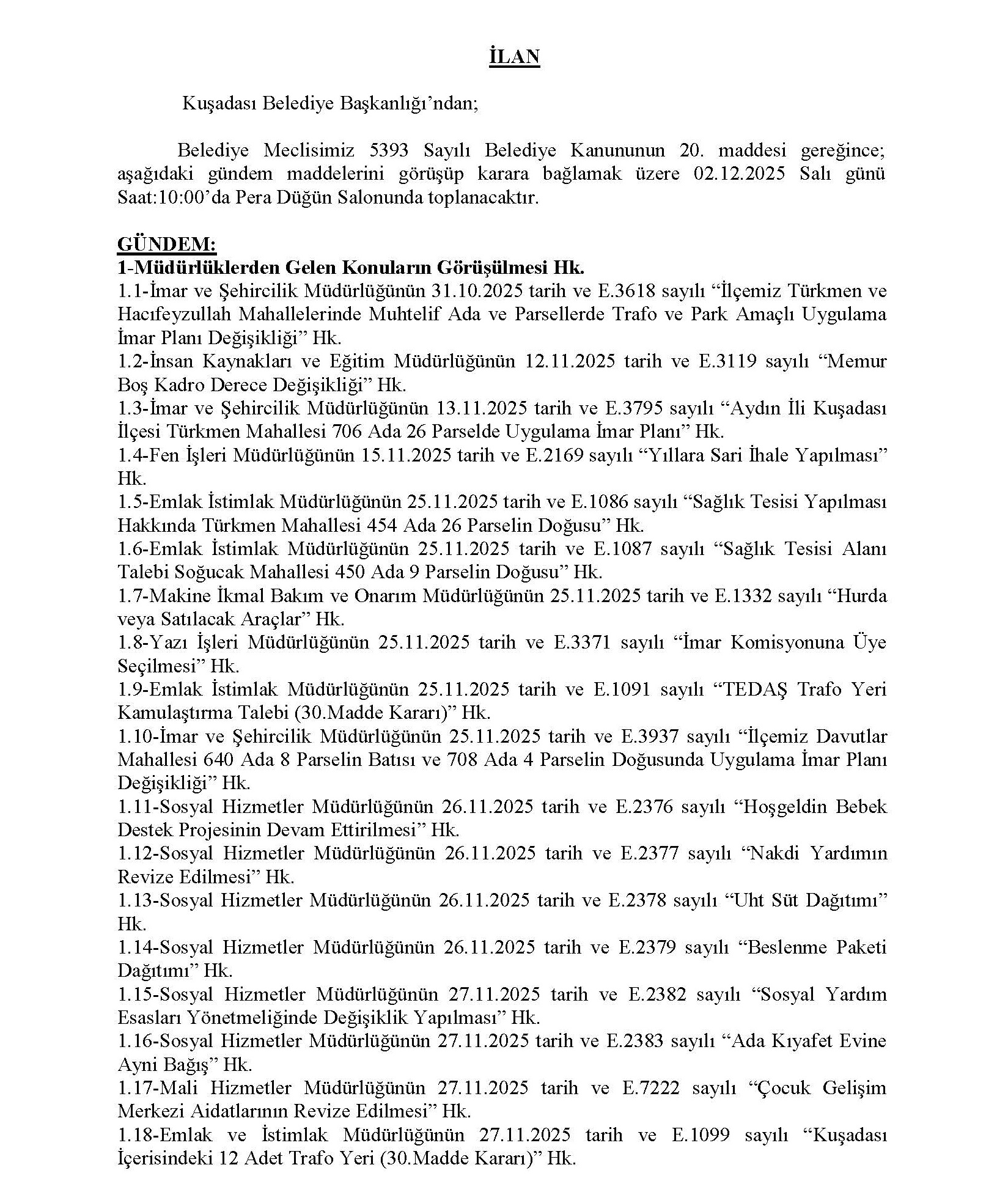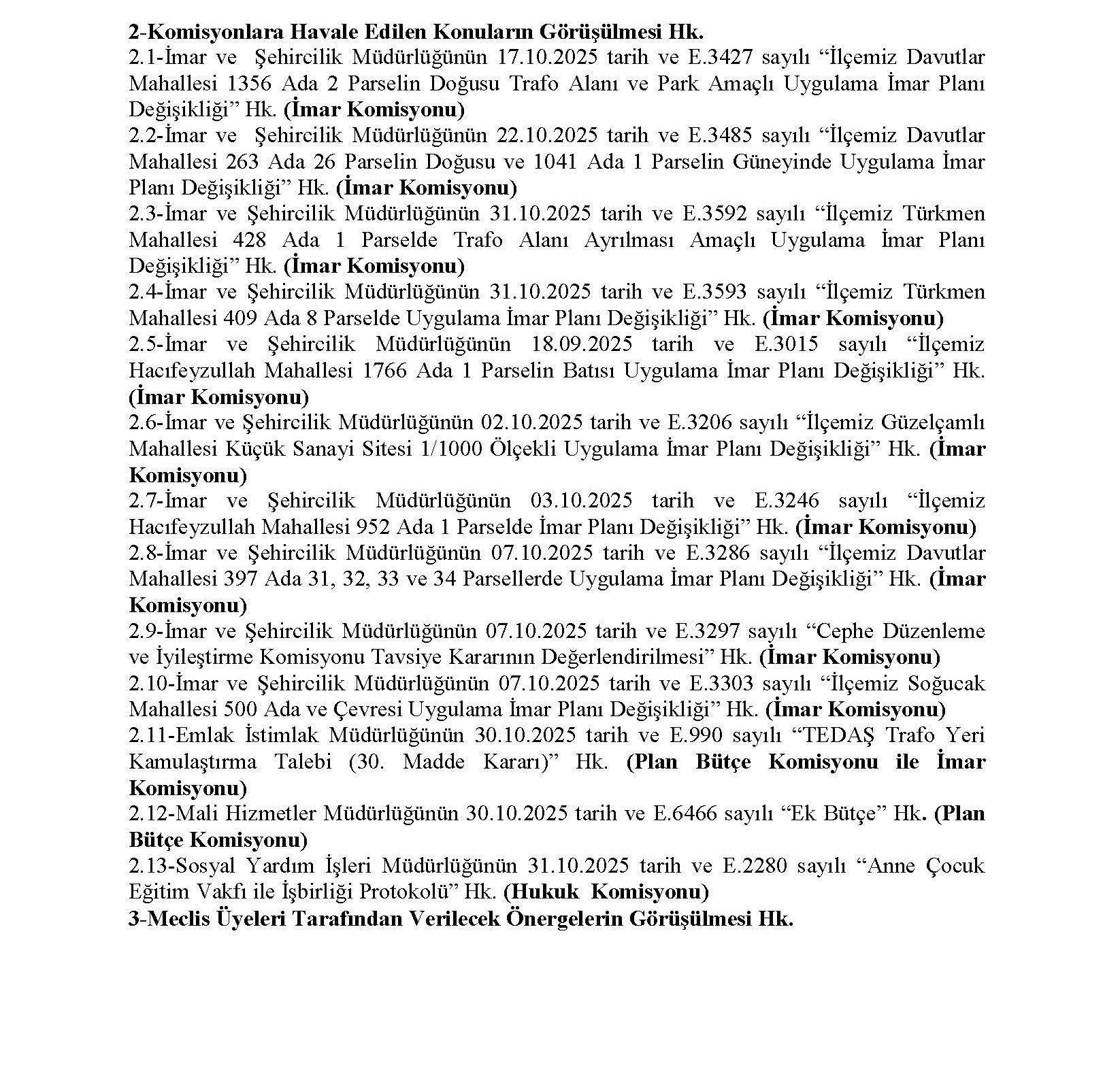 12-11-20252 Aralık 2025 Tarihli Belediye Meclis Toplantısı Gündemi