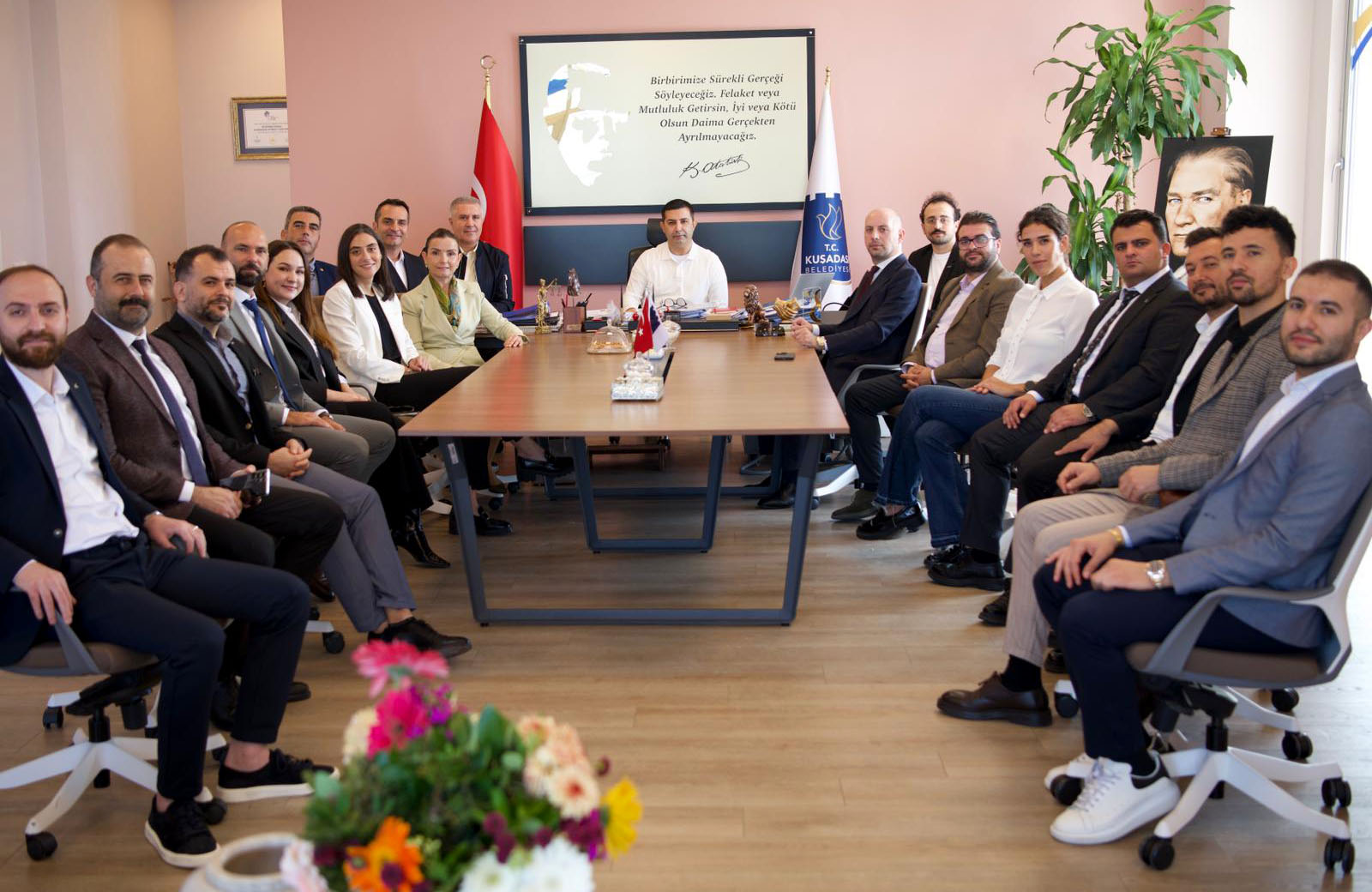 Kuşadası Genç İş İnsanları Derneği’nin yeni yönetim kurulu, Başkan Ömer Günel’e nezaket ziyaretinde bulundu. Toplantıda, Kuşadası Belediyesi ile KUGİAD’ın ortaklaşa yaşama geçirebileceği proje ve faaliyetler ele alındı.
