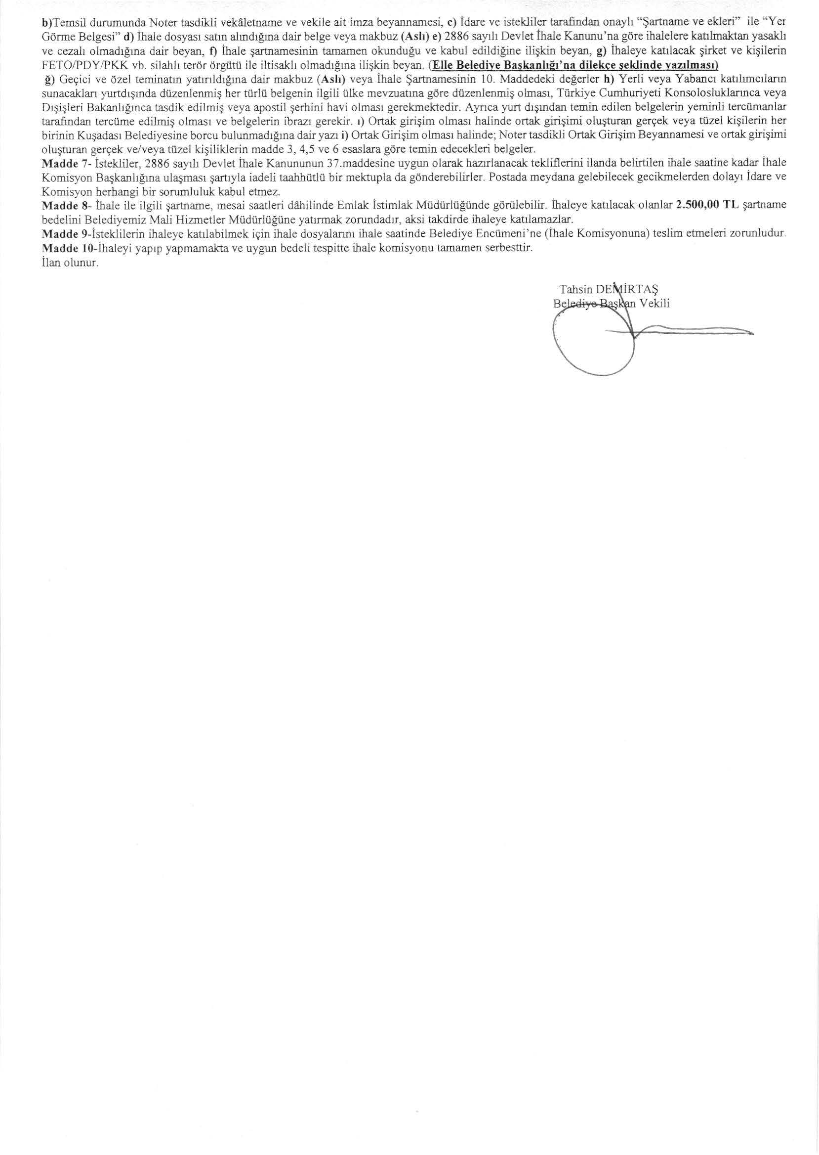 08-03-2026Kuşadası Belediye Başkanlığı’ndan İhale İptali ve Yeni İhale Tarihi Duyurusu (Hacıfeyzullah Mahallesi 304 Ada 20 Parsel Mahmut Esat Bozkurt Caddesi No:19 F)