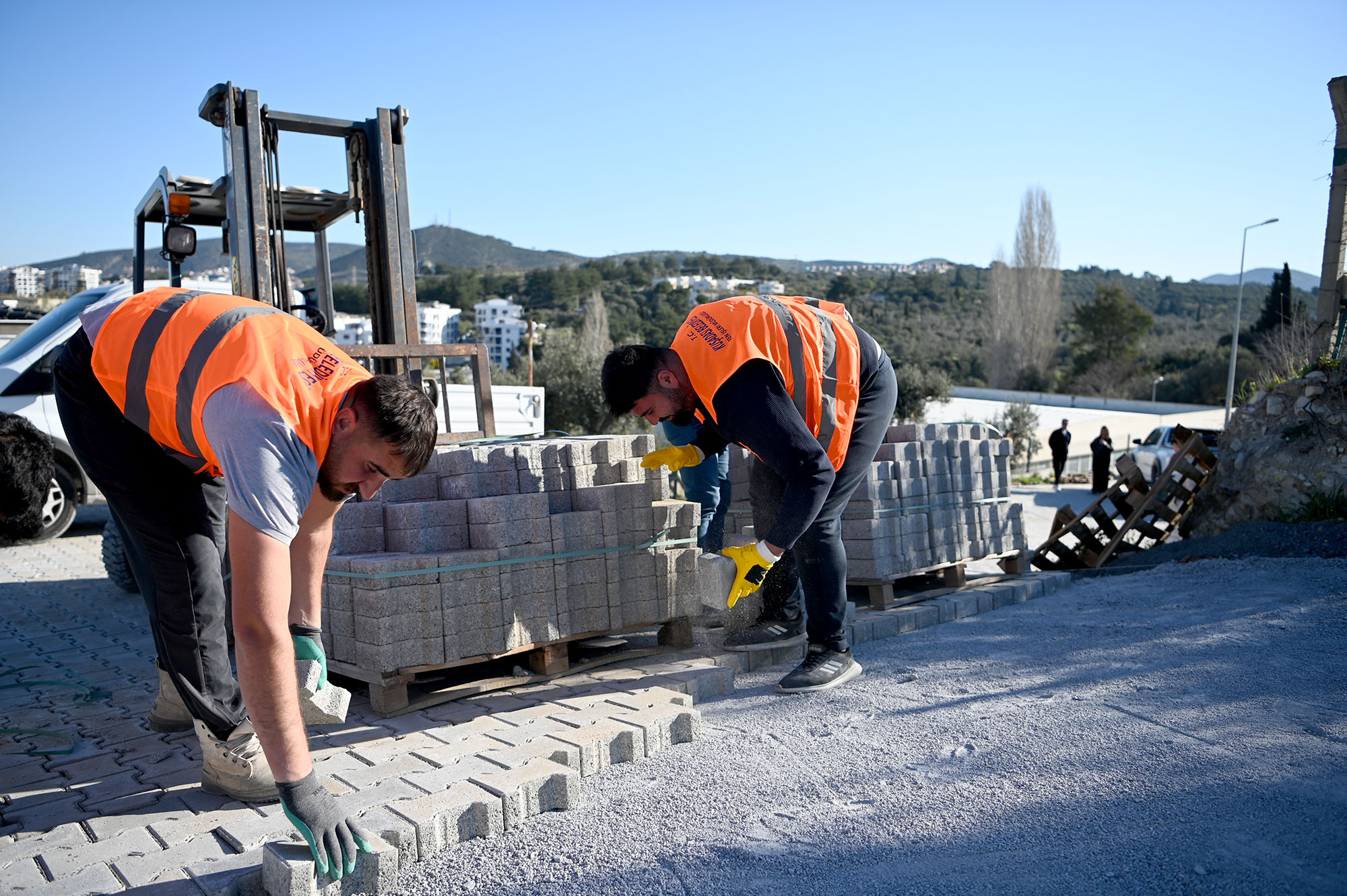 Kuşadası Belediyesi, kent genelinde sürdürdüğü yol yenileme çalışmalarına Değirmendere Mahallesi’nde devam ediyor. Bu kapsamda Fen İşleri Müdürlüğü ekipleri, 3525 ve 3544. sokakları kilit parke taşıyla kaplıyor.