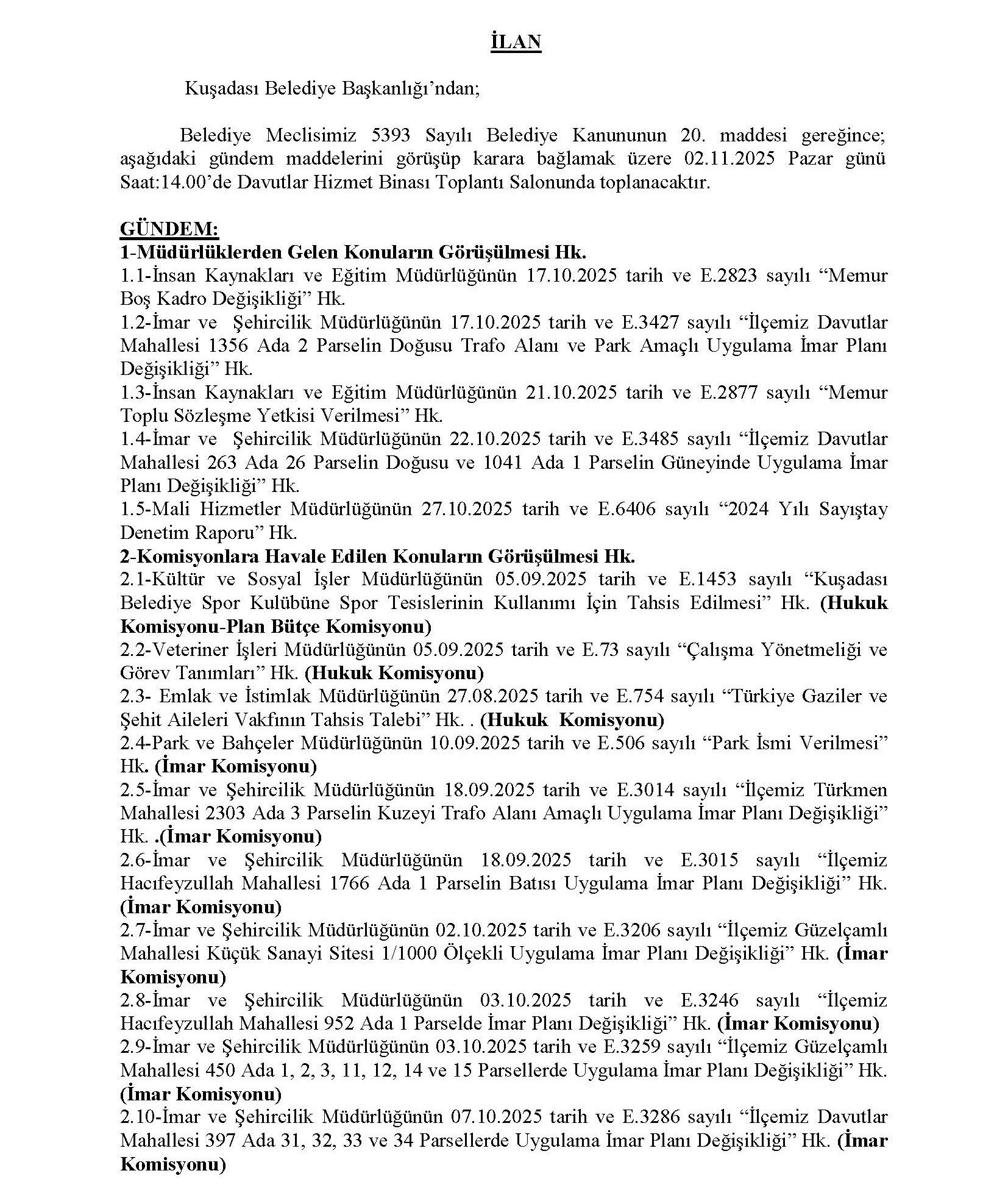 22-10-20252 Kasım 2025 Tarih ve 11 Nolu Meclis Toplantısı Gündemi