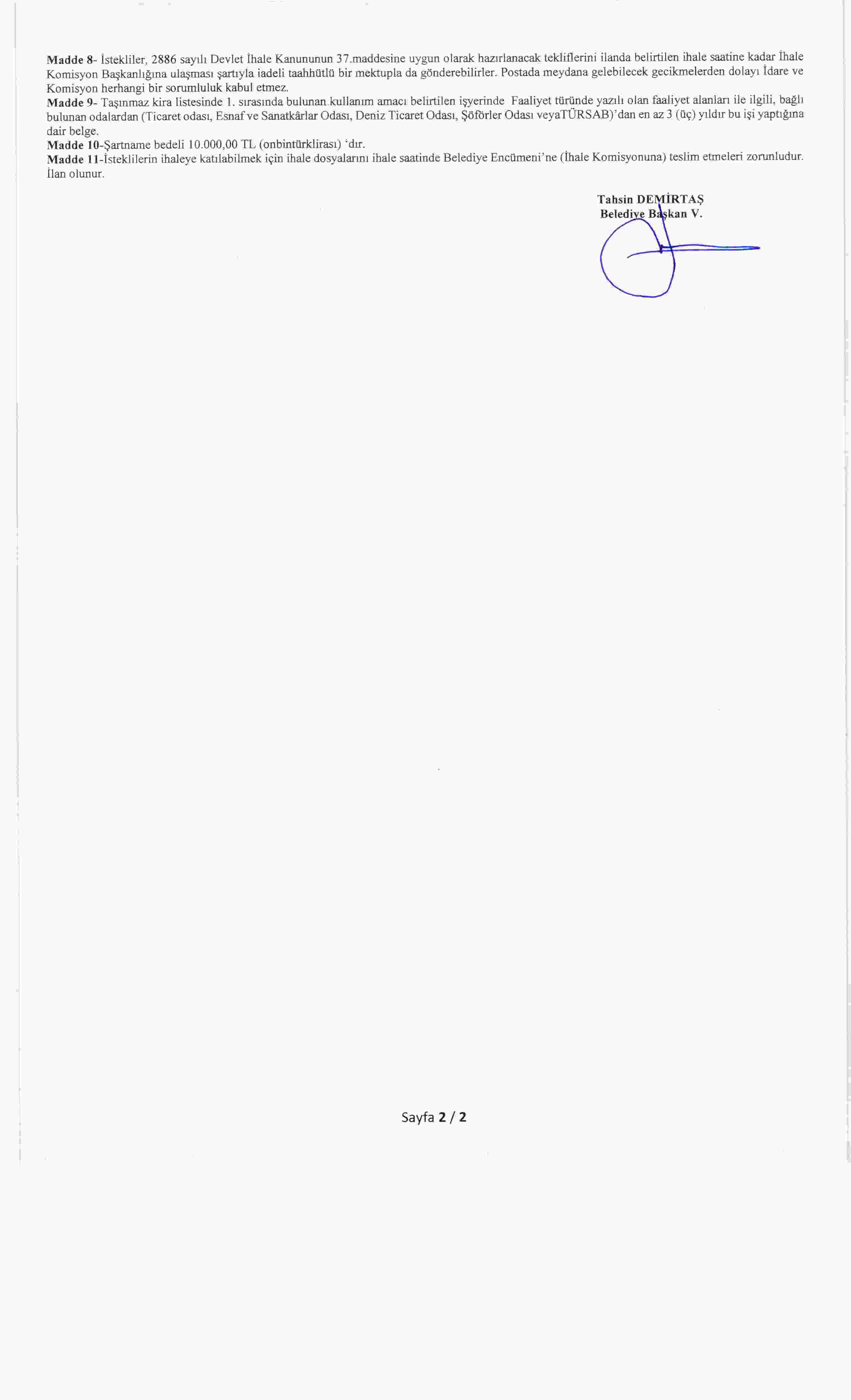 24-03-2026Kuşadası Belediye Başkanlığı'ndan 21 Nisan 2026 Tarihli Taşınmaz Kiralama İhalesi İlanı